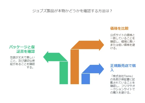 ジョブズの偽物は外観での判断が難しく、公式サイトにも見分け方は記載されていません。