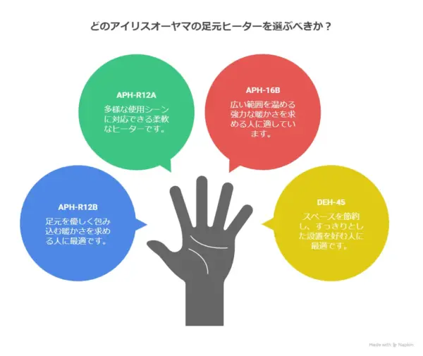 これが、足元ヒーターを後悔なく選ぶためのいちばんのコツです。