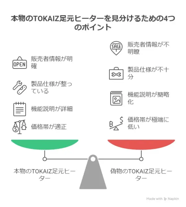 TOKAIZ 足元ヒーターの偽物を見分けるための結論:ここだけは確認してほしい4ポイント