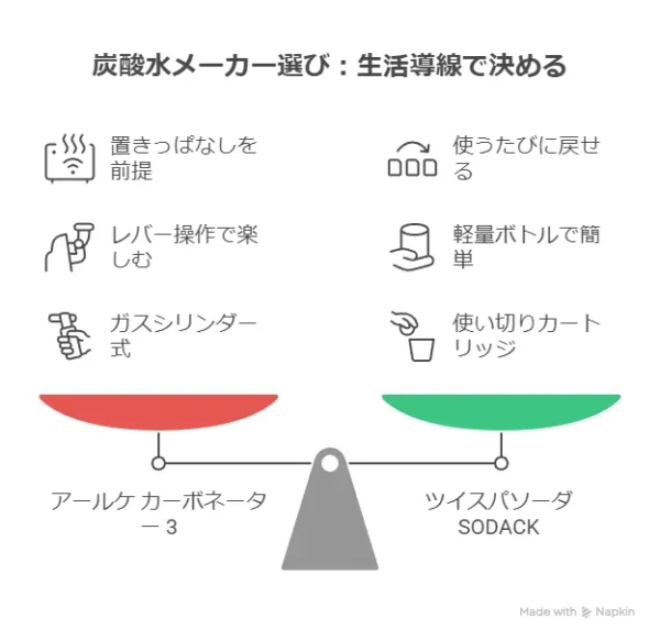 - 炭酸水メーカーの違いが、生活導線から整理できる