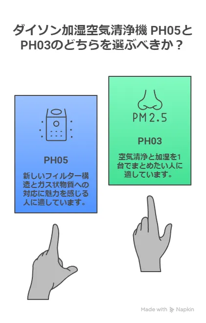ダイソン加湿空気清浄機 PH05とPH03の違い